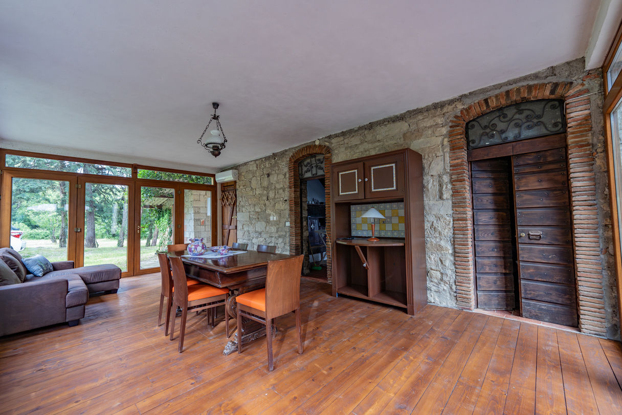 Hier, umgeben von silbrig schimmernden Olivenhainen und dichten Wäldern, findet man eine selten gewordene Oase der Ruhe. Die Villa liegt in absoluter Alleinlage, fernab vom Trubel des Massentourismus. Wer echtes italienisches Lebensgefühl sucht, wer morgens von Vogelgezwitscher geweckt werden und die Abendsonne mit einem Glas Wein in der Hand genießen möchte, wird sich hier zu Hause fühlen.